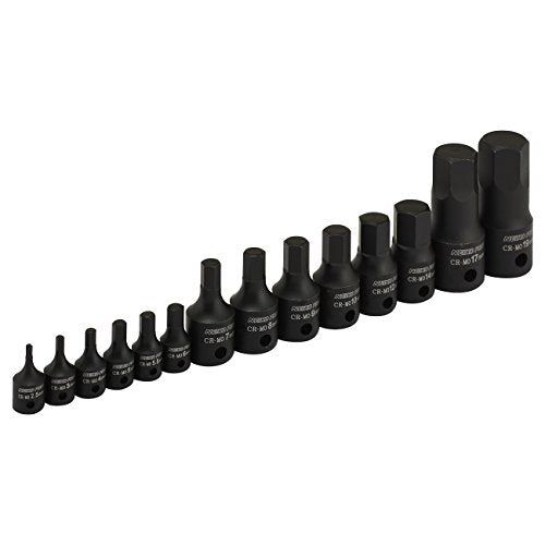 - [SIZES] 14 piee set inludes: 1/4" drive - 2.5, 3, 4, 5, 5.5, 6mm, length 30mm 3/8" drive - 7, 8, 9, 10, 12, 14mm , length 40mm 1/2" drive - 17, 19mm, length mm.
