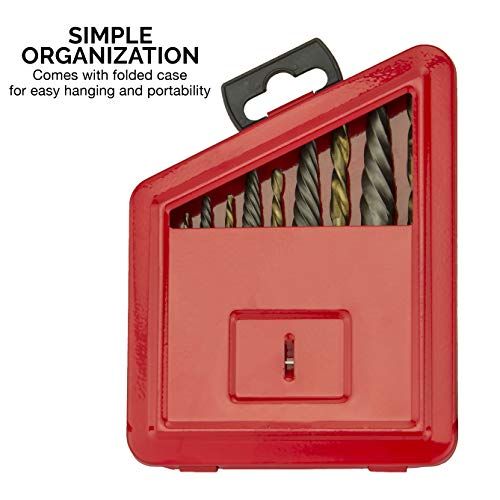 Details: NEIKO 01925A Srew Extrator and Left Hand Drill Bit Set 10 P, Cobalt HSS M2 Steel Drill Bits, Alloy Spiral Flute Reverse Drill Bit & Bolt Extrator, Easily Remove Stripped Srews & Broken BoltsNEIKO 01925A Left Hand Bit and Easy Out Extrator Set. Remove broken srews whether working on wood or metal, ideal for onstrution, automotive or home DIY projets. Left hand drill bits prevent you tightening the bolt you are trying to remove while reating a whole to put the extrator in. In some ases the left hand drill bit will possibly remove the bolt or srew without needing the ral flute. Step 1: Wear the proper safety gear suh as safety gles and . Step 2: If neessary use a enter punh to reate a indentation in the enter of your broken fastener. Step 3: Selet a left handed drill bit that has a smaller diameter than your stuk fastener. Step 4: Carefully drill down aligned straight with the srew about 1/8th to 1/4 inh. Step 5: Insert the tip of your srew extrator (ral flute), turn the tool ounterlokwise. As you turn the extrator while foring in the threads will grip or bite into the hole, ontinue turning ounterlokwise and pull to ompletely remove the stripped or broken srew.Forney 207 Tap Magi Industrial Pro Cutting Fluid, 4 ozForney welding 207 tap magi Pro ut fluid 4 oz.