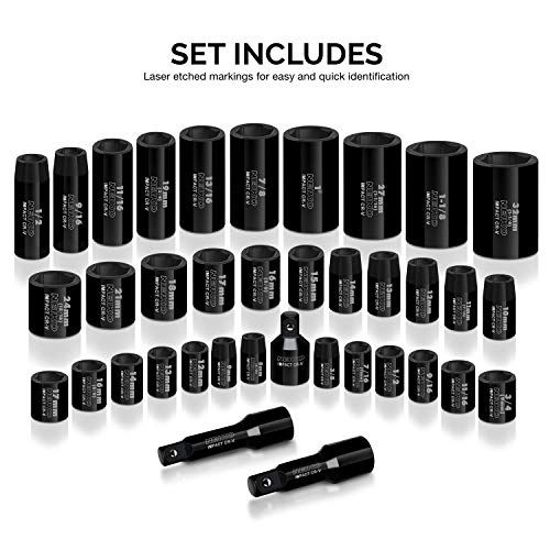 - [COMPLETE SET]: A unique ombination of both SAE & Metri sizes in two different drive sizes with deep & shallow length sokets, whih inludes 11 duometri sokets to make it a highly versatile set in your automotive olletion.