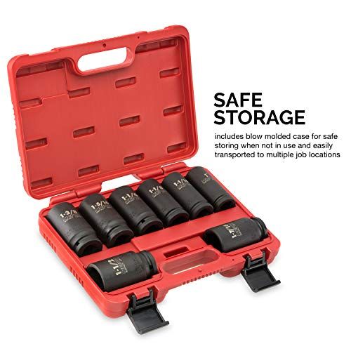 - INCLUDES COMMON SAE SIZES: Inludes eight ommon Standard soket sizes (1, 1-1/16, 1-1/8, 1-1/4, 1-5/16, 1-3/8, 1-7/16, 1-1/2 inh) with blow-mold storage ase inluded.