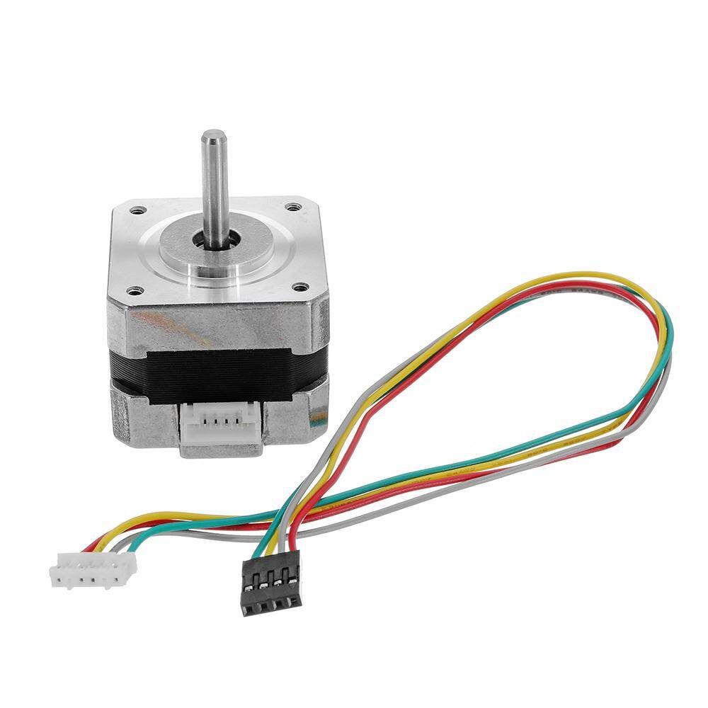 General Specifications Step angle 1.8° Number of phase 2 Insulation resistance 100MΩmin.(500V ) Insulation class Class B Rotor inertia 38g.cm2 Mass 0.2kg Electrical Specifications Rated voltage 12V Rated current 1.7A Resistance per phase 30Ω ± 10% Inductance per phase 37mH ± 20% Holding torque 260mN. m Detent torque 12mN.m