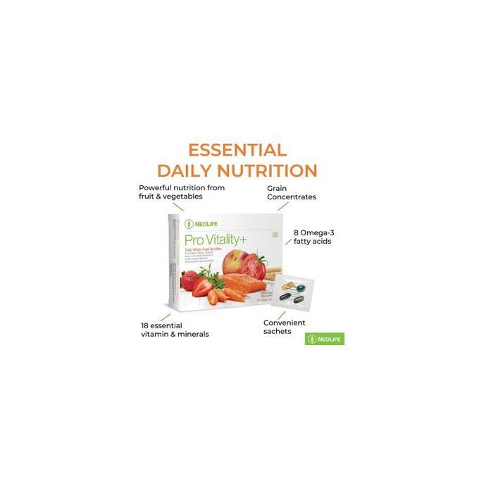 Maintain/reclaim your energy & vitality with Neo life Pro Vitality. Young children are full of energy and vitality. Statistics show that most young people in their 20s start to fall into the tired zone. In one survey, the favourite pastime of teenagers was found to be ‘resting'. We want to live younger longer, with all our mental faculties, free from debilitating degenerative disease. You can upgrade your cells to healthy, vibrant energy-producing machines and thus reclaim your zest and vitality for life.Protects cells: Reduces oxidative damage to cells by 44% with powerful antioxidants found in many brightly coloured fruits and vegetables, including tomatoes, carrots, apricots, spinach etc. Shields cells from both oxidation and inflammation. Free radical oxidation slowly ages our cells, destroying their ability to adequately repair damage, thus leading to premature aging and chronic life-threatening diseases eg. cancer and heart disease. Your daily sachet of 6 servings of fruit and vegetables!