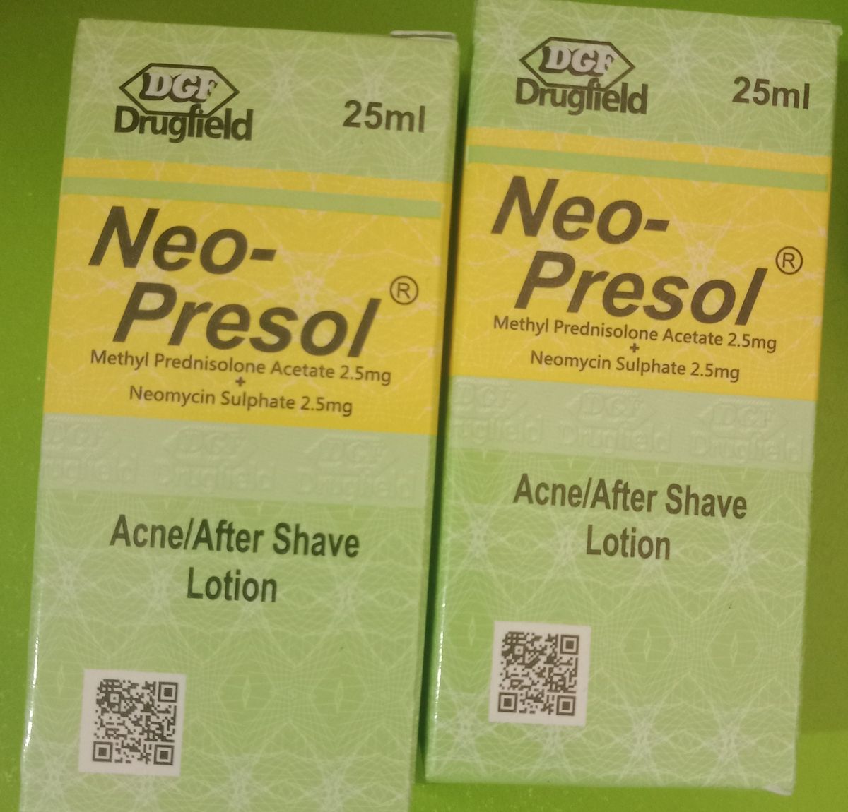 Drug Field Neo-Presol Acne/After Shave Lotion - 25ml is a triple action lotion that is effective in the control and treatment of acne vulgaris, acne rosacea and dermatitis. It is also known to be effective in the control of skin irritation and eruptions that often occur after shaving.