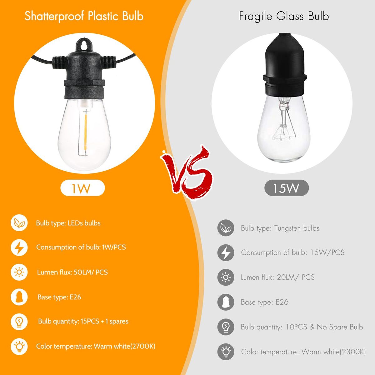 Buy Neoglint 15M/49FT S14 String Lights 15 Hanging Sockets 16 E26 1W LED Bulbs 2700K Warm Light with Remote Control IP65 Waterproof for Outside Backyard Garden Porch in Nigeria