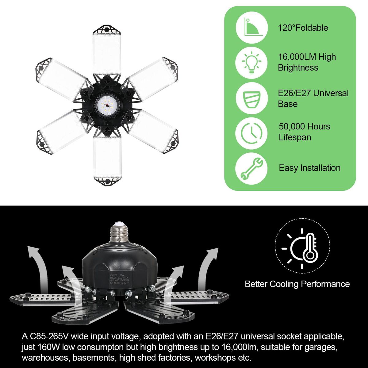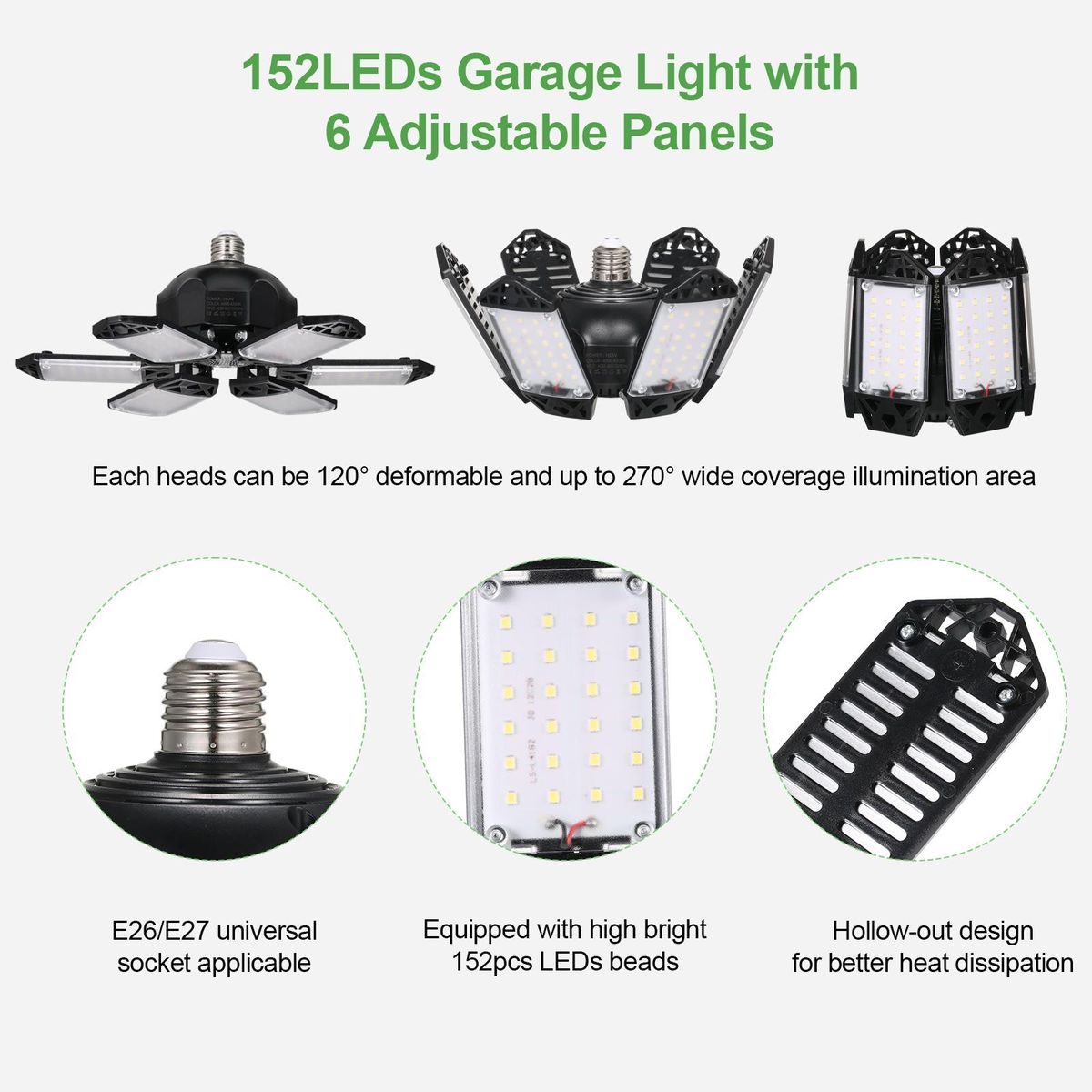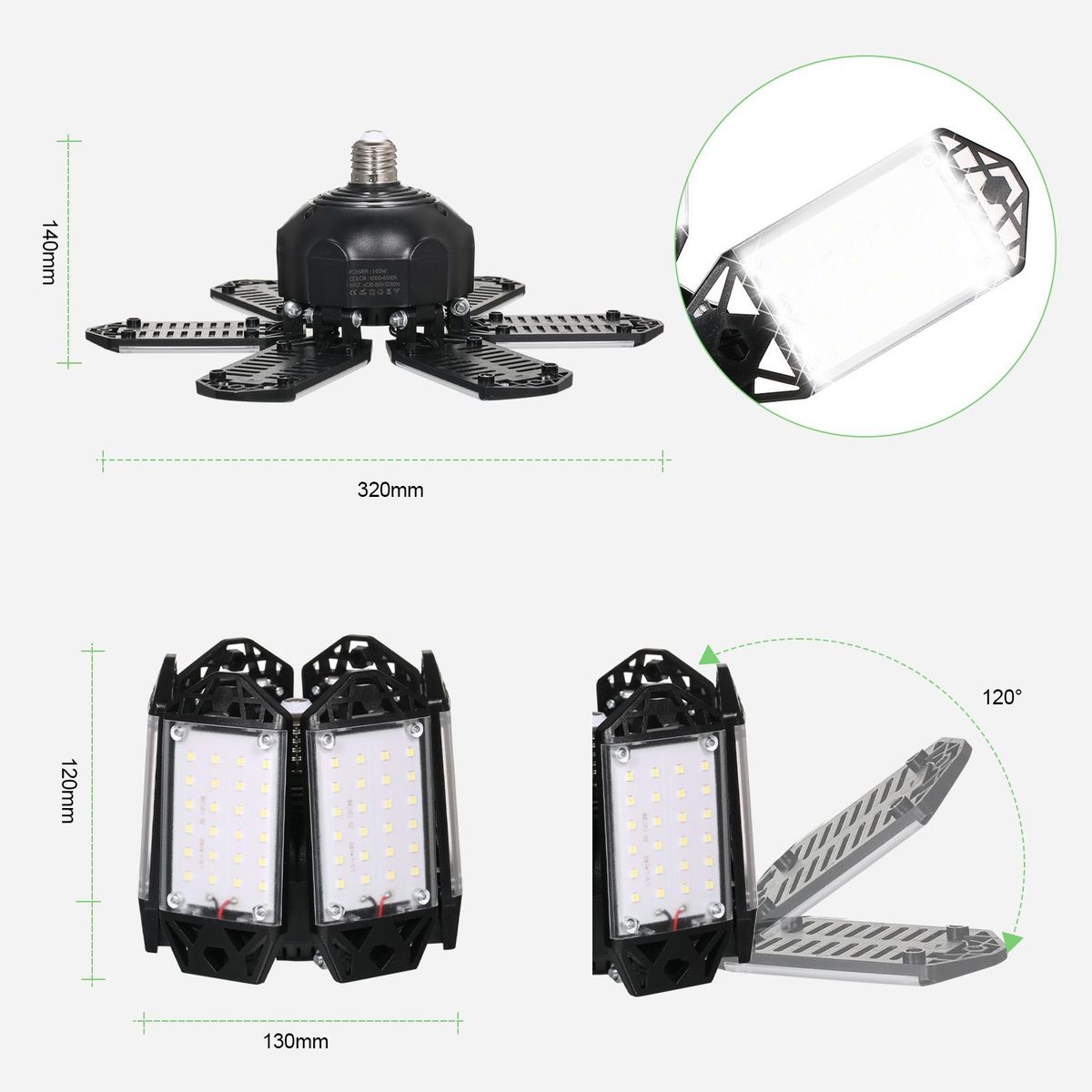 Buy Neoglint 2PCS A C85-265V 160W 152LEDs Garage Light with 6 Adjustable Panels Deformable Folding Foldable Ceiling Lamp E26/E27 Base Socket Holder for Garage Warehouse Workshop Basement Gym Kitchen in Nigeria