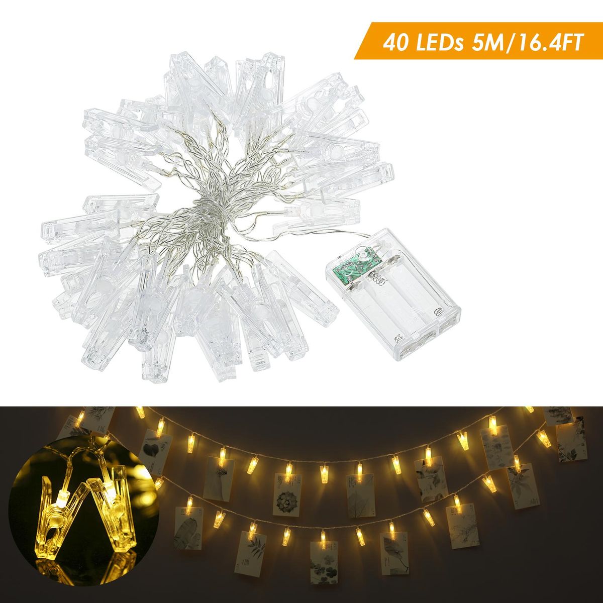 Buy Neoglint 40 LEDs Photo Clip String Light Cell Powered 5M/16.4FT for Living Room Bedroom Party in Nigeria