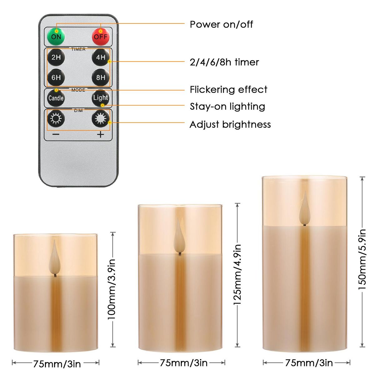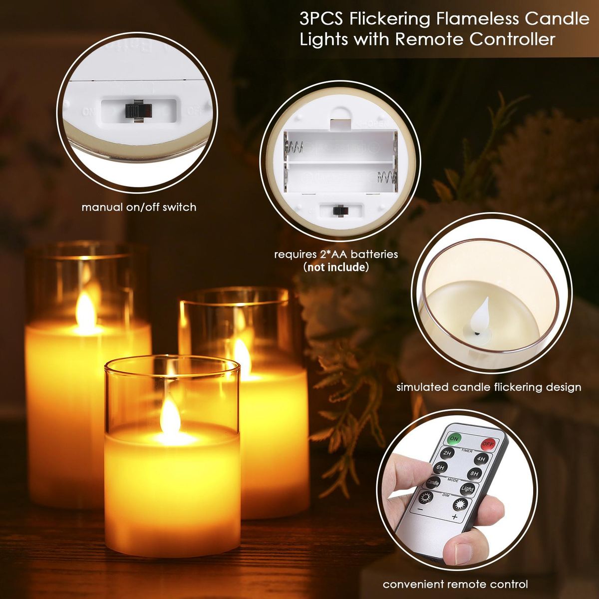 Buy Neoglint Flickering Flameless Candle Lights with Remote Controller 3pcs Batterys Operated Realistic LEDs Candles Warm Lighting Candle Lights with 2 Lighting Modes 5 Brightness Levels Timer Function for Indoor Outdoor Dinner Party Wedding Xmas Decoration in Nigeria
