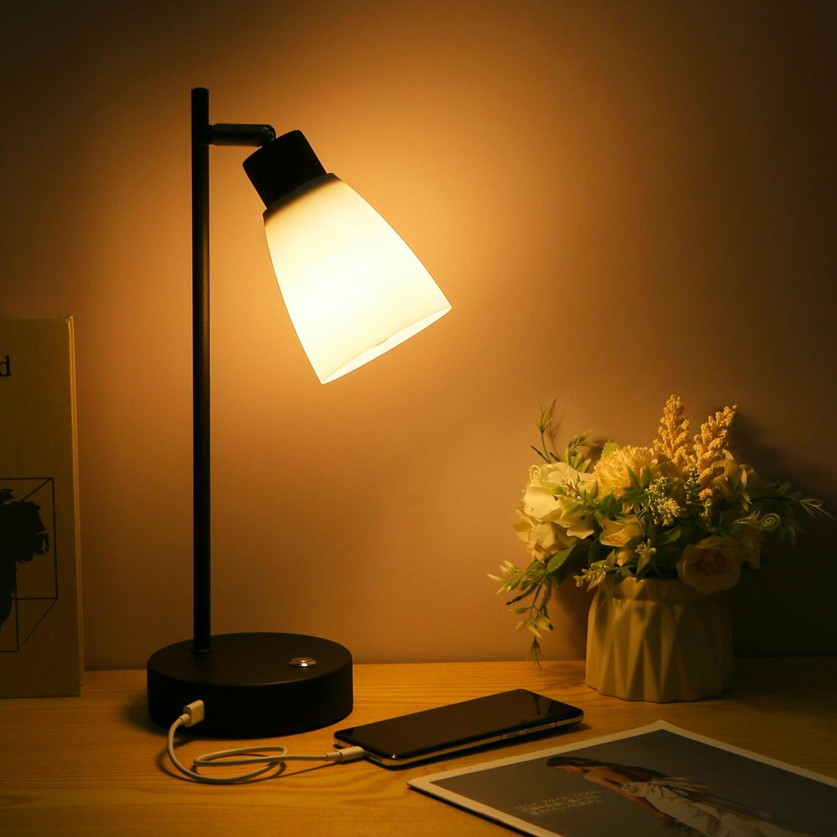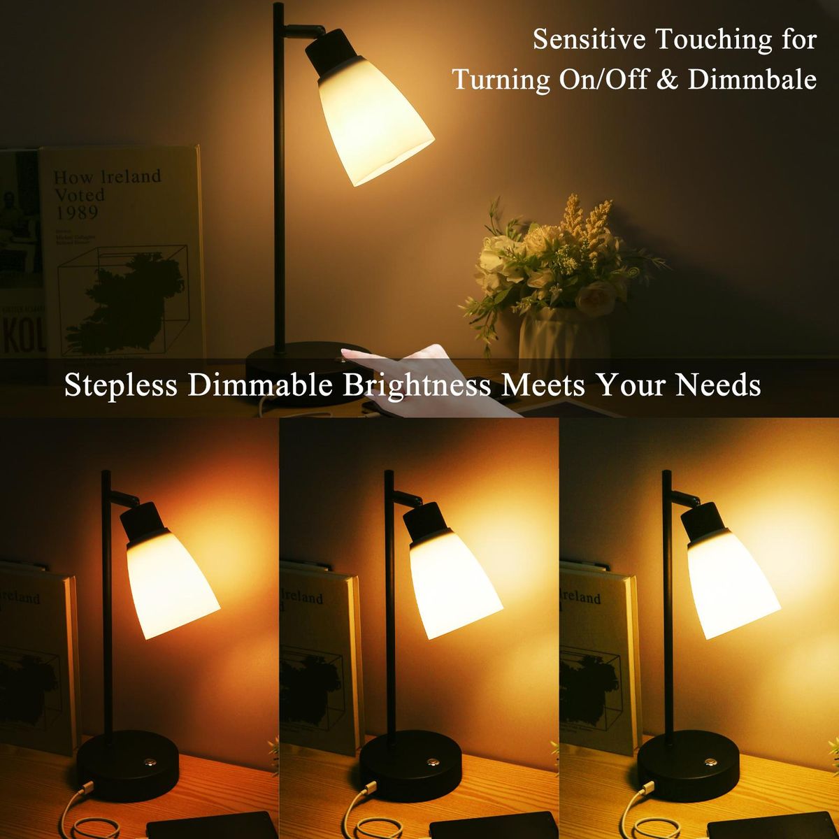 Buy Neoglint Table Lamp Touch Control Beside Reading Lamp Type C & USB Charging Port Stepless Dimmable Brightness Adjustable Sensitive Light Control with LEDs Bulb for Bedroom Living Room in Nigeria