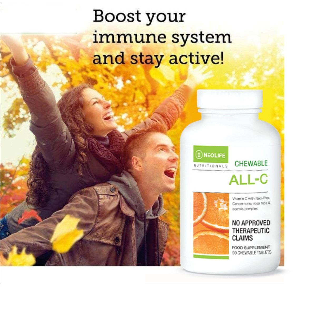 Vitamin C, the body main water-soluble antioxidant, strengthens immunity, aids wound healing, and supports overall good health. Besides its own powerful antioxidant role, it is an integral part of the body antioxidant defense team and helps recharge the body main fat-soluble antioxidant, vitamin E. Vitamin C is needed to make collagen, the cellular cement that provides structure to skin, bones, blood vessels, and other tissues. Diets rich in vitamin C are linked to increased longevity and promotes cellular health, cardiovascular, and eye health. As vitamin C is water- soluble, it can be stored in the body for long. it must be replenished daily. As important as this protector nutrient is, more than half of us do not consume the Recommended Dietary Allowance each day. NeoLife provides two excellent choices to address this gap: Threshold Controlled Super C for sustained release over six hours or more, and delicious All-C for a chewable option. Our products feature high- potency, high-purity vitamin C plus vitamin C-related factors from whole citrus fruits. All NeoLife vitamin C products include our exclusive Neo-Plex Concentrate virtually everything from whole oranges but the water for better absorption and utilization