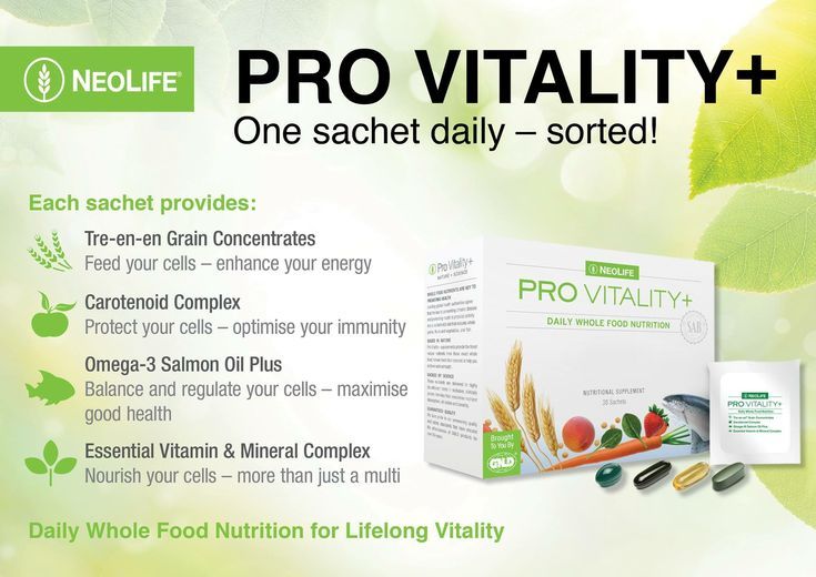 NeoLife's Pro Vitality supplements provide the finest nutrients from whole grains, fruits and vegetables and fish to help you achieve optimal health. The Pro-vitality box contains 30 sachets and each sachet provides: