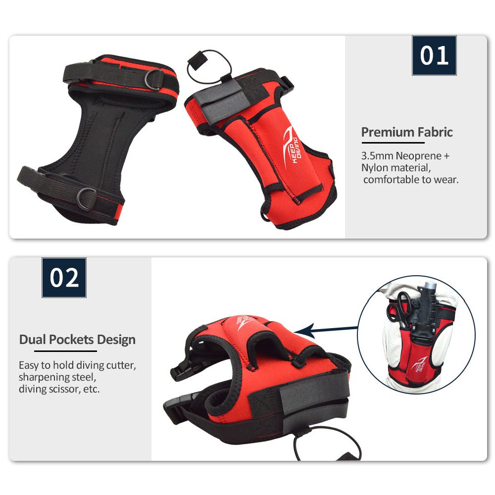 Dual pockets design, easy to hold your diving cutter and other s.