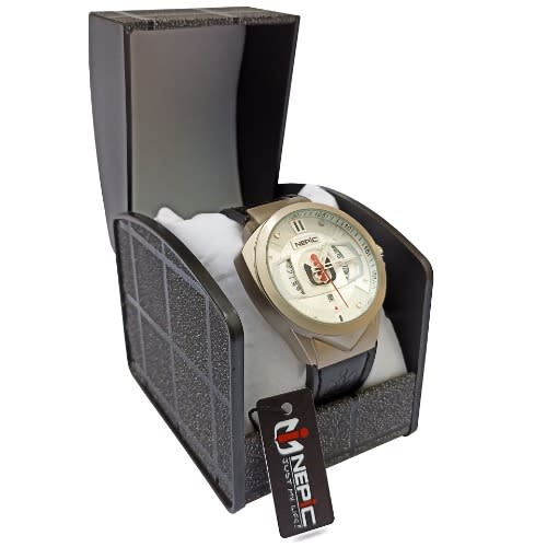 NEPIC 42mm Watch – Black Leather, Grey-Silver Frame