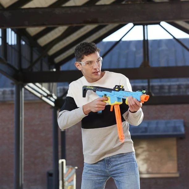 Ages 14 and upTO AVOID EYE INJURY:WARNING: Do not aim at eyes or face. Use of eyewear recommended for players and people within range. Use only official Rival rounds. Other rounds may not be safe. Do not modify rounds or blaster.For use with Nerf Rival products only.