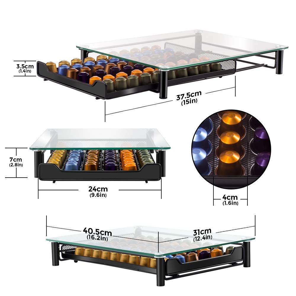 Dimensions: 40cm L * 30cm W * 6.5cm H . Item Included: 1*coffee pod drawer only. Coffee pods are excluded. Only Compatible with Nespresso original line pods.