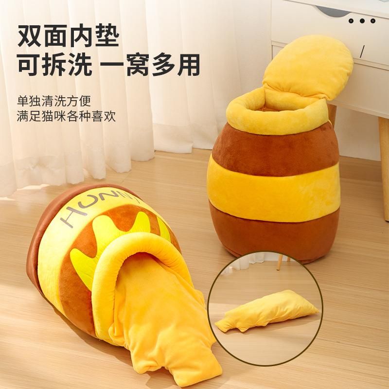 Buy Net red honey pot nest cute cat nest closed soft comfortable detachable winter warm cartoon dog kennel pet nest Brown in Nigeria