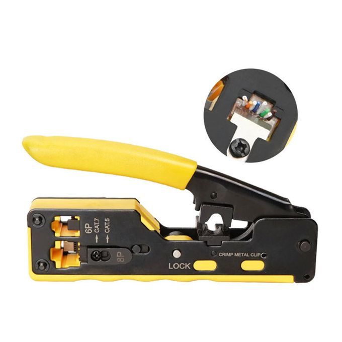 The back side is designed with crimping interface blades, specially designed for through-hole crystal top, crimping and off excess network cables at the same time.