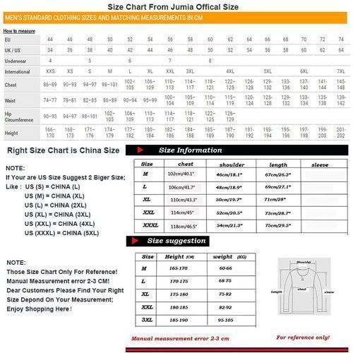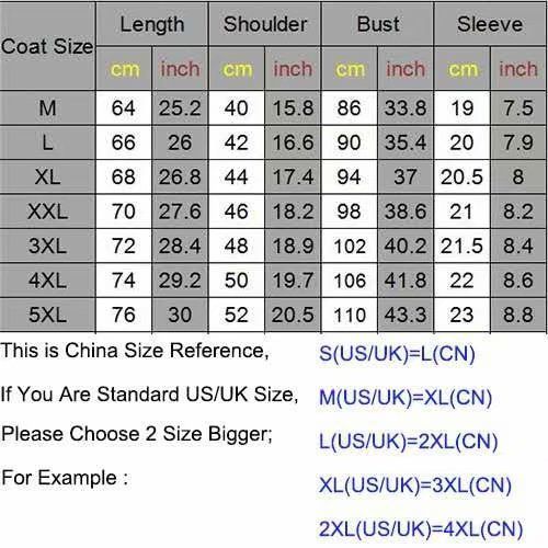 About Size:China Size Smaller Than UK/US Size,Like your Standard US Size is L,Suggest Choose 2XL in Our Shop;If Your Standard US Size is XL,Suggest Choose 3XL;Like:US (S) = China (L);US (M) = China (XL);US (L) = China (2XL);US (XL) = China (3XL);US (2XL) = China (4XL);US (3XL) = China (5XL);