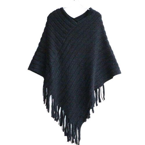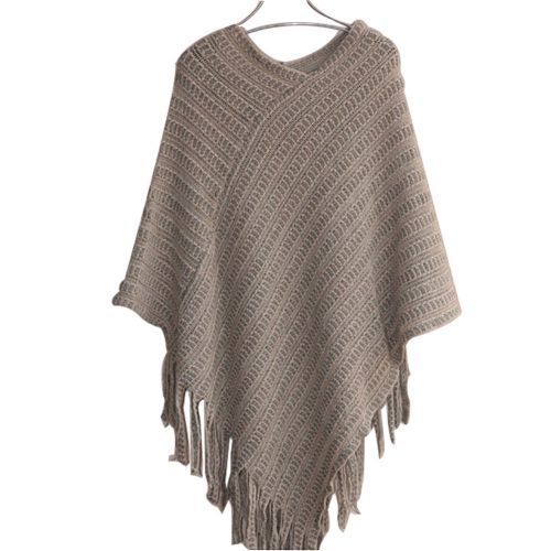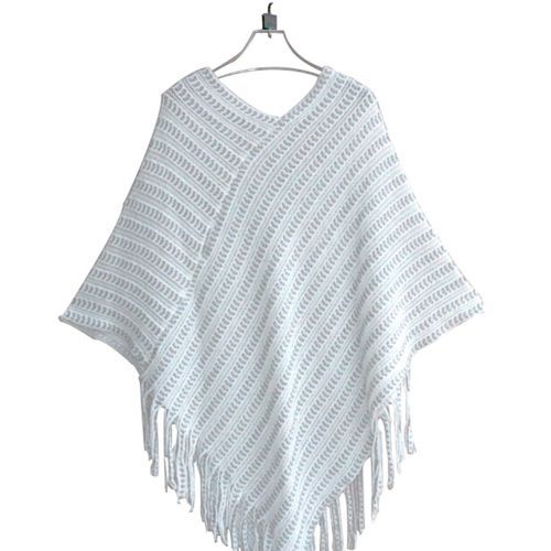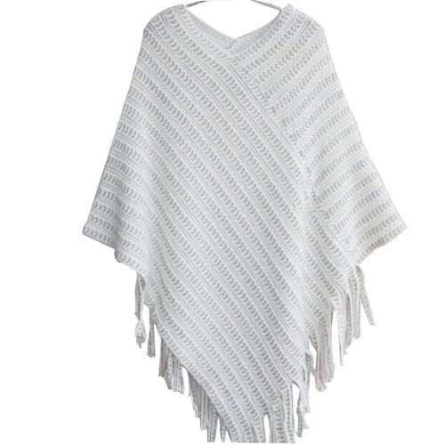 1X New 2017 Womens Ladies Cape Coat Fringe Poncho Oblique Stripe Coat Bohemian Shawl Scarf