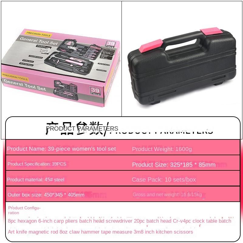 Buy New 39-Piece Pink for Women-Piece Tool Set, Carbon Steel Household Tools PE Blow Molding Boxed Color Multi-Specification, Suitable for Home Use in Nigeria