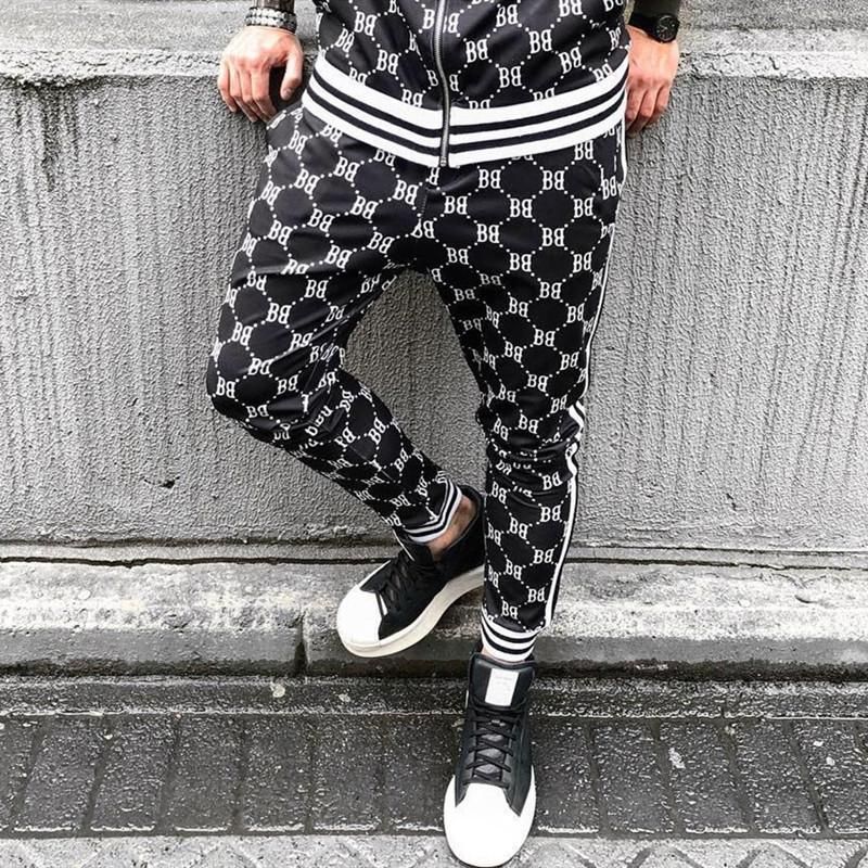 Nuevo 2019 cuadros 3d impreso floral pantalones de jogging de la aptitud de los hombres pantalon bombacho de estilo haren de puntoA rayas Slim hombres entrenamiento pantalones de chandal