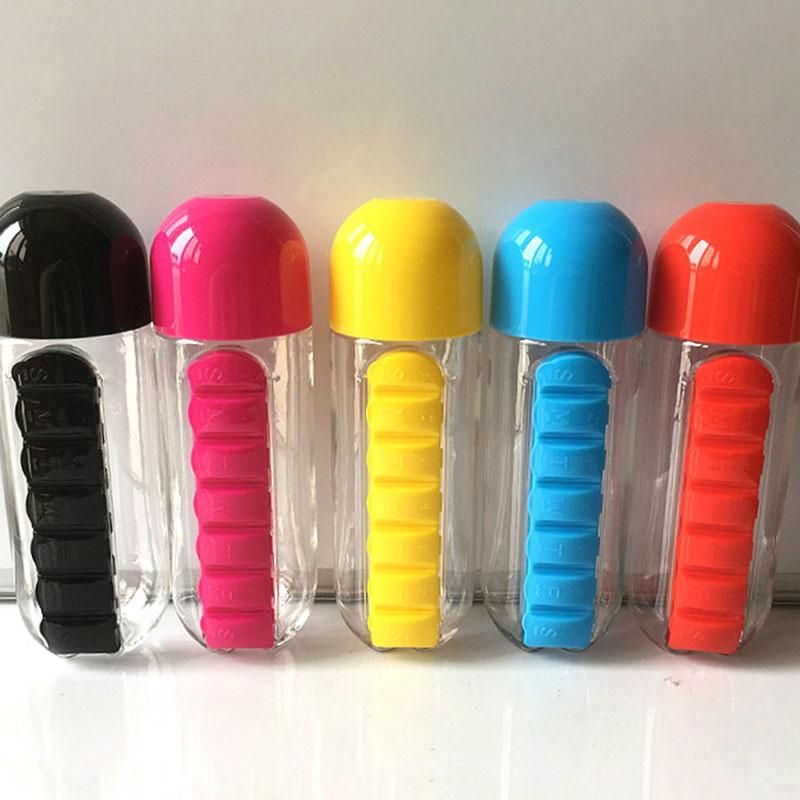 Buy New 600ml Sports Plastic Water Bottle Combine Daily Pill Boxes Organizer in Nigeria