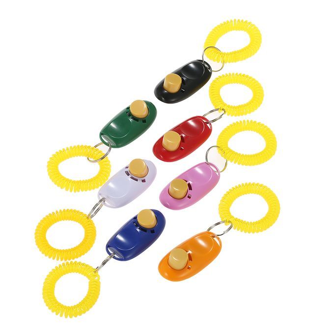 A dog training clicker can be an effective tool for teaching your dog to follow your commands, such as calling him to you, sitting or going in a new direction. Come in a pack clickers with wrist straps in 7 different colors: pink, white, green, orange, red, black, blue. You can train your dog for basic obedience, small trick, and correct the bad behavior with scientific method of training. Useful training tool for sound-sensitive pets with push button for easy clicking and loud sound.