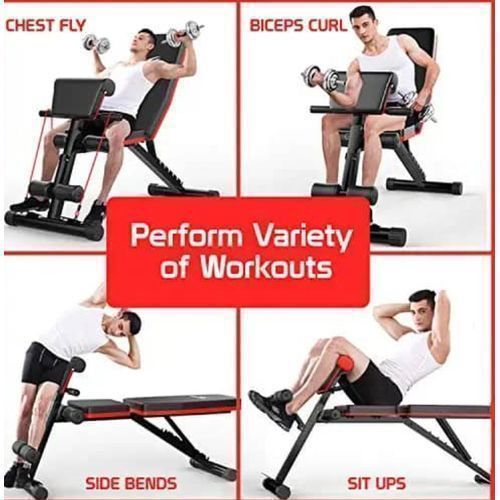 Adjustable Bench is a sleek designed, multi-functional bench for specific training with small accessories as well as for bodyweight exercises Weight training benches may be of various designs: fixed horizontal, fixed inclined, fixed in a folded position, with one adjustable portion, with two or more adjustable portions, with racks to hold bars, etc. In the limit, the definition of a bench blurs into that of combinations that mix a bench and associated equipment.Though the weight bench seems to define weight training for modern audiences, benches are not strictly necessary for many, if not most, exercises that typically use them. For example, seated presses may be done while standing.