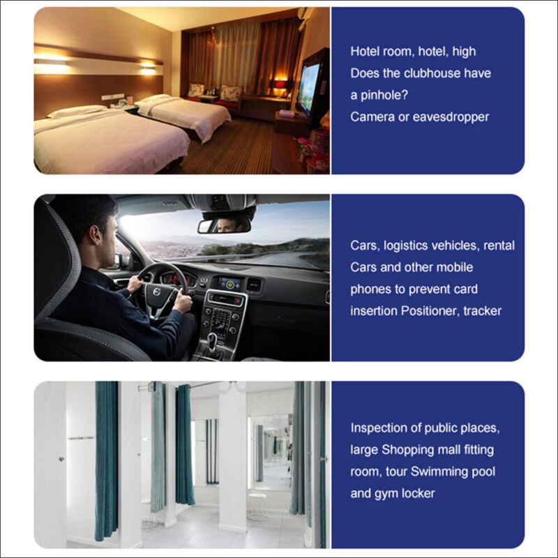 Detect whether your car or office wireless eavesdropping devices to be installed, wireless listening devicesDetect whether the phone has been tapped or abnormal (standby transmit signals from outside for no reason)Your car to detect whether the eavesdropping device was installed GPS tracking, GPS location trackerDetecting your working environment and residential buildings have rooftop base station radiationDetection SMS send and receive signals, cell phone internet signals, cell phone switch and call signalsDetect wireless network signal, cell phone base station signal s, wireless motioning system of the filed strengthDetect whether the leakage of household electrical appliances such as microwave ovens, etc on the human body against electromagnetic radiationDetect whether they have been living in the environment know as the "mobile phone killer" strong radiationDetect whether the circumstances are suspicious live radio signalsDetect more covert videotaping 5.8GHz wireless camera, wireless eavesdropping devices, wireless monitor the signalCheck hotels, toilets, entertainment venues, changing rooms, anti-wireless pinhole cameraBusiness negotiations, school examiner places, factories, military facilities or government agencies eavesdrop anti-photographedIn the ATM machine withdrawals, movie theaters, concerts, art galleries or museums such as anti-wireless photographedPurchase of buildings, first to detect whether the electromagnetic radiation hazards to human health