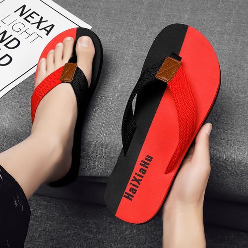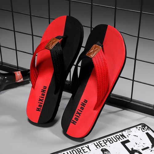Buy New Arrival Youth Sandals Men Flip Flops Shoes Summer Cool Men Slippers Comfy Soft Anti-slip Flat Sandals Outdoor Casual Beach Shoes Red in Nigeria