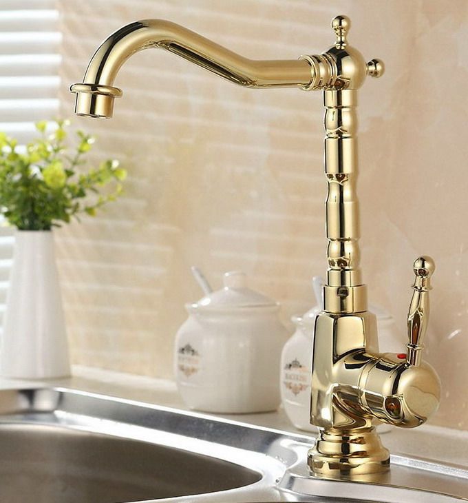 1X New Arrivals European Retro Style Gold Color Finish Kitchen Faucet Bathroom Sink Tap Solid BrBasin Hot Cold Mixer Water Taps