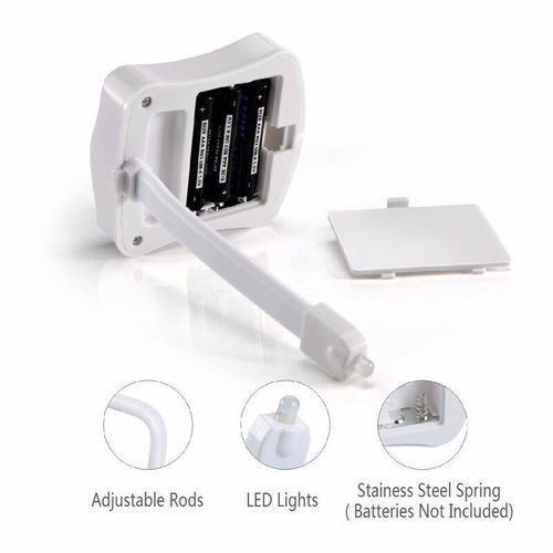 Features:Convenient use and confortable atmosphere-The toilet night light can save the trouble of turning on the light in darkness, which can help prevent stumbling or hurt in midnight, which is more important and helpful for kids and senior citizens.Besides, its various colors can bring good atmosphereMotion Active in darkness-This toilet light is motion activated, it will light on whenever it senses any motion in darkness and the toilet bowl light will automatically turn off once it senses no motion for about 2 minutes. The motion sensor of the toilet bowl light will be effective within the distance of the 1 meter( about 39.37 inches)-8 colors of the toilet bowl light are available. When it turns on after sensing any motions, the colors will then rotate gradually in order(red, orange, sapphire, green, blue, purple, pink and white). Besides, there is a button on the surface of the gadget that lets you choose between rotating colors and choosing one color you prefer. When you press it when light is on, the color will stay unchanged.Portable and easy use-The toilet night light comes with the box-shaped portion for storing the batteries and the bendable arm for attaching it to the toilet bowl. At the end of the arm of the bowl light is the LED light source, whose colorful light can shine inside the bowl. The toilet lights will work with 3 pcs of AAA batteries( not included)spePower Source: 3*AAA batteries(not includ)Colors: 8(red, orange, yellow, blue, green, light blue, rose, purple, white), changingSwitch Type: Light sensitiveLight Source Type: LED lightMaterials: plasticWeight: 72gPackage included:1 x Nightlight (Battery Not Included)Shipping and Packaging All items will be double checked and well packed before sending.Items will be dispatched within 2 business days after buyers pay for the order. It usually takes about 14 to 18 working days for delivering the package to the destination(for remote areas,it may take a little longer). Special Announcement:Please fill in the correct and detailed consignee, address and phone number in the order. For fast and correct delivery.If you do not receive order within 30 working days,please feel free to contact Customer Service before leaving Negative and Neutral Feedback, we will do our best to help you resolve the problem.No, you will only pay what is quoted as total cost at checkout, no more. You are not expected to pay any additional duties or es. If you are asked by Customs or our logistic partner to pay duties, please contact our Customer Service .ReturnIf the product is not on good condition, You can return this product within 14 working days, please contact customer service center before returning.FeedbackYour satisfaction is our first priorityIf you receive the order and it is in good condition,we would be grateful if you would leave us 5 star Positive Feedback for the transaction.
