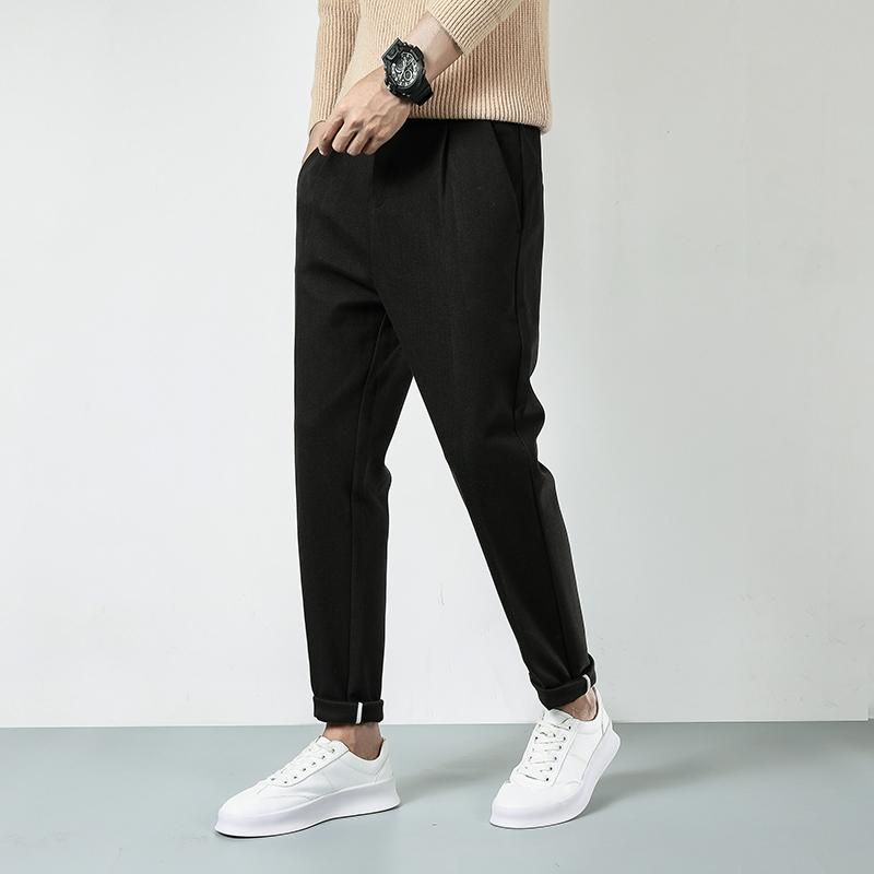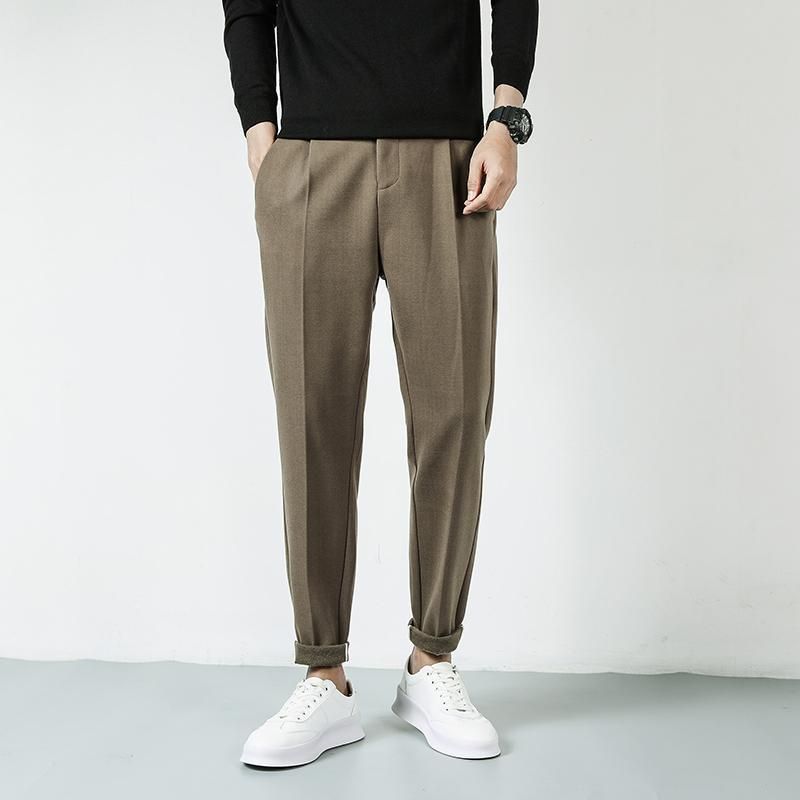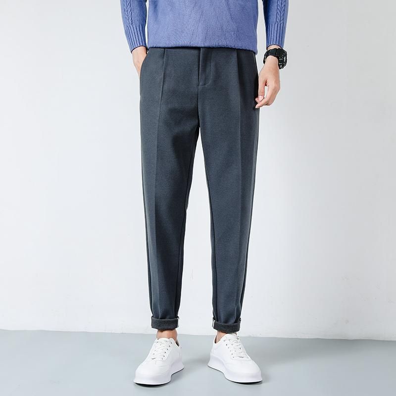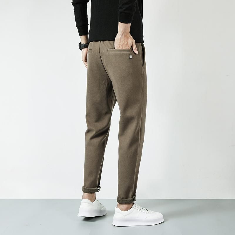 2021 nuevos pantalones casuales de los hombres de mezcla de lana gruesa Pantalon Slim Hombre elastico cintura elastico para Hombre Ropa de otono calido invierno Pantalones