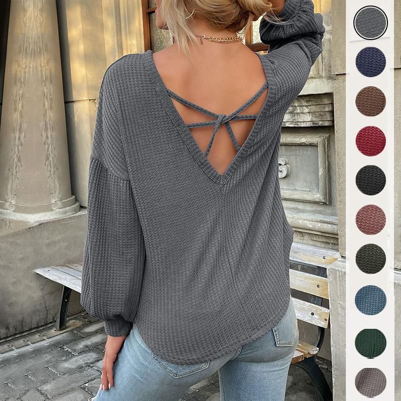 Buy New casual top long-sleeved grey backless hollowed out sweater in Nigeria