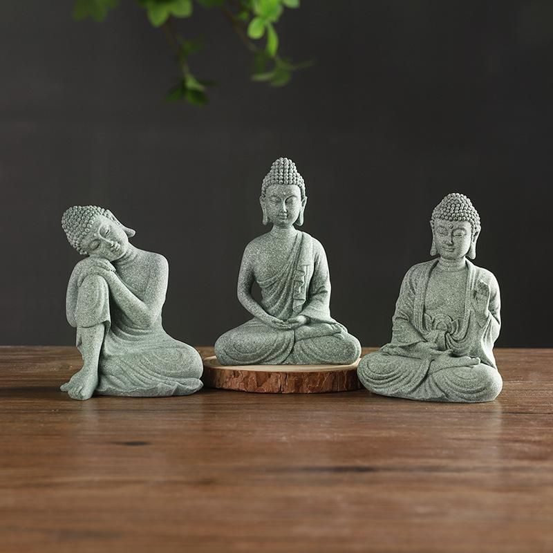 Buy New Chinese-style Zen Buddha statue sitting posture decoration creative green sand stone tea pet desktop fish tank landscaping home decoration decoration Calm Buddha in Nigeria