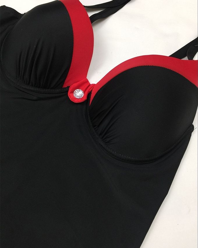 New Crystal Buckle Monokini Women Plus Size Bathing Suit Adjustable Straps Swimwear 8-20 Girl Underwire Beachwear Bodysuit-Red