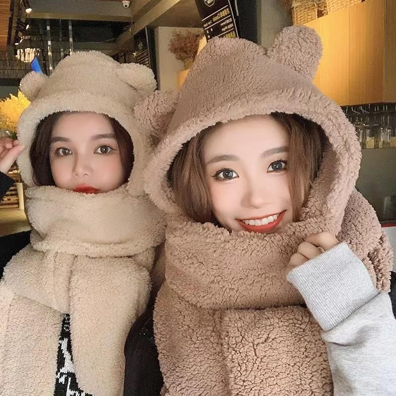 Buy New Cute Bear Ear Hat Scarf Gloves Set Winter Women Beanies Caps Warm Casual Plush Hats Casual Solid Fleece Girl Kawaii Present in Nigeria