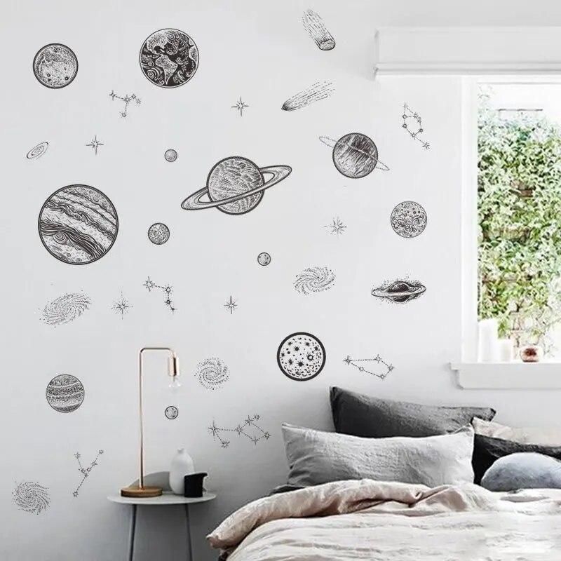 Buy New Europe Style Cartoon Cosmic Planet Galaxy Wall Sticker for Kids Room Learning Outer Space for Living Room Art Decals PVC in Nigeria
