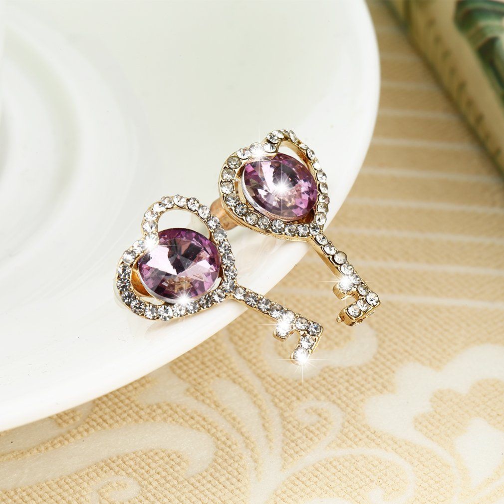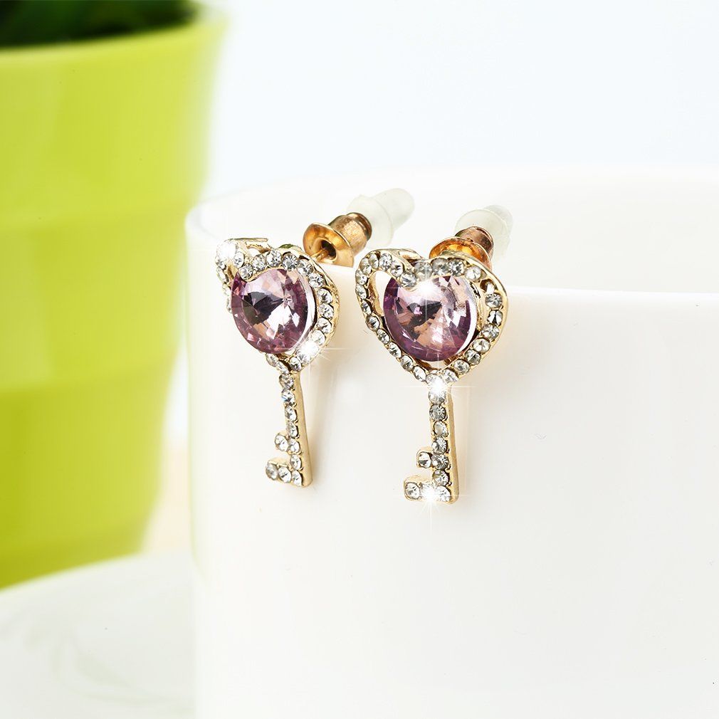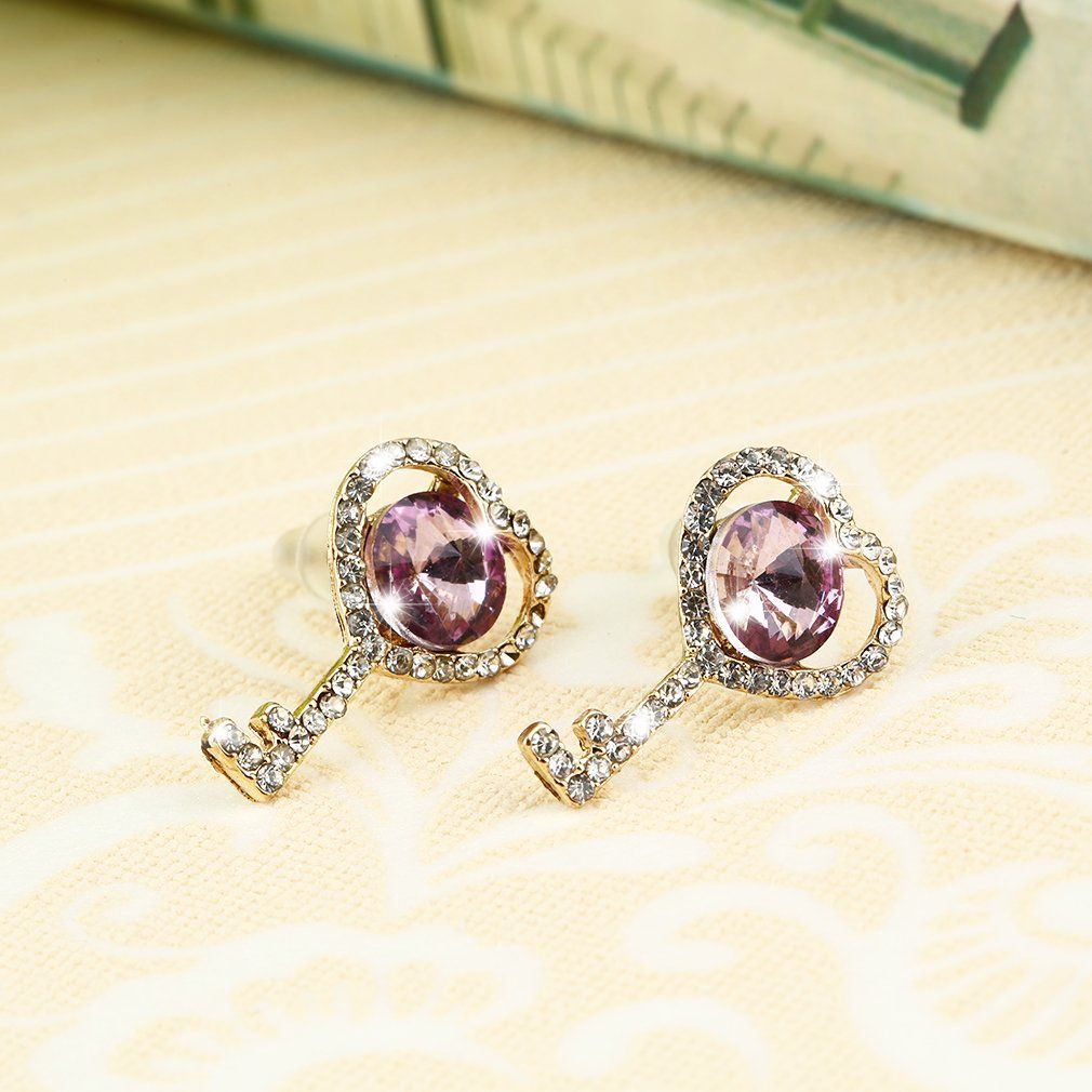 1 pair x Key-shaped Rhinestone Studs Earrings