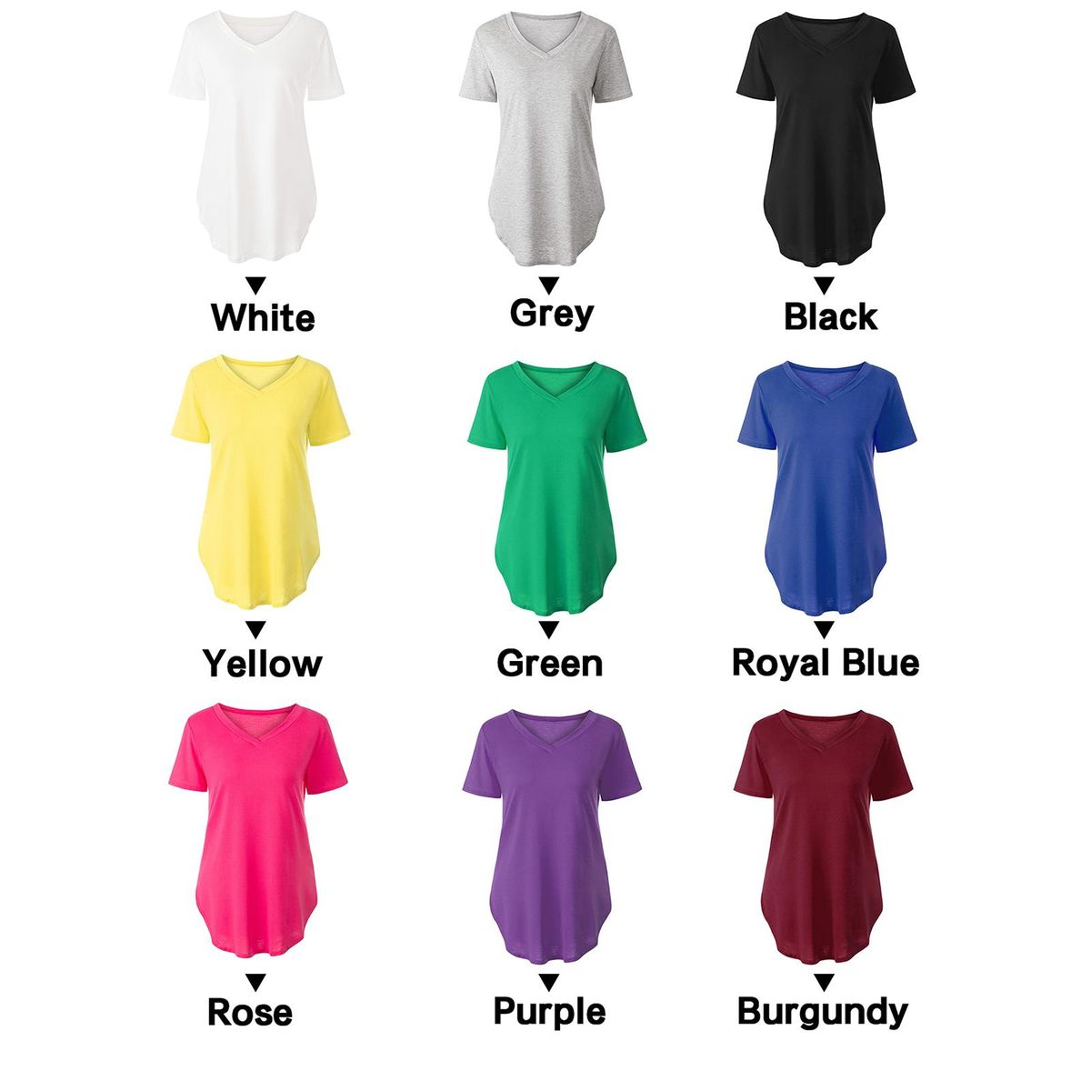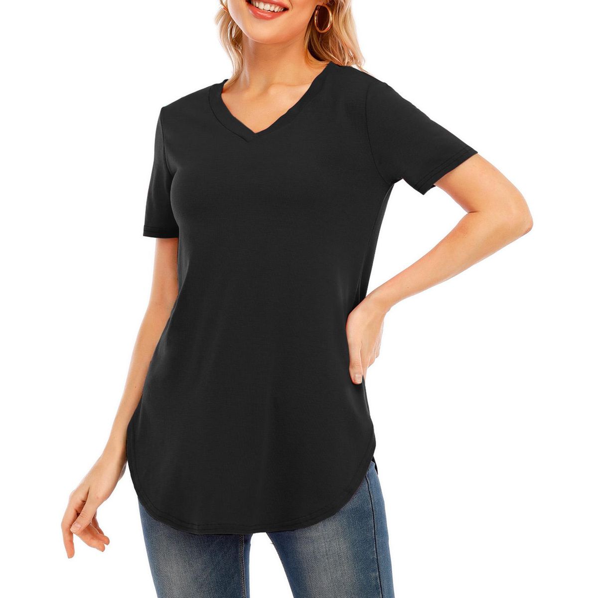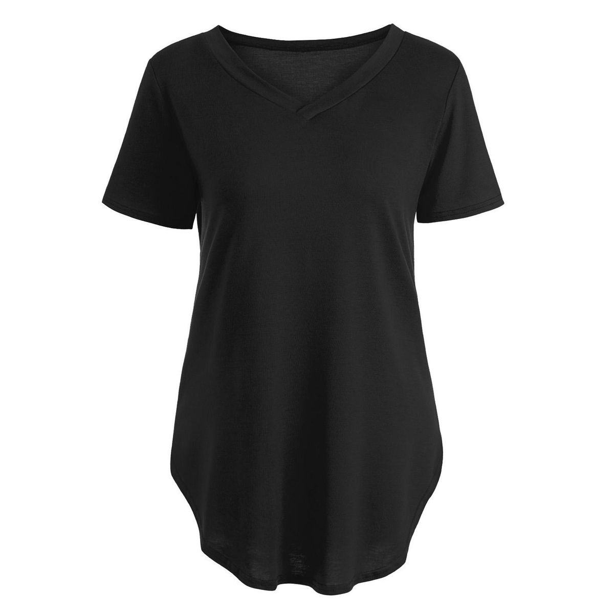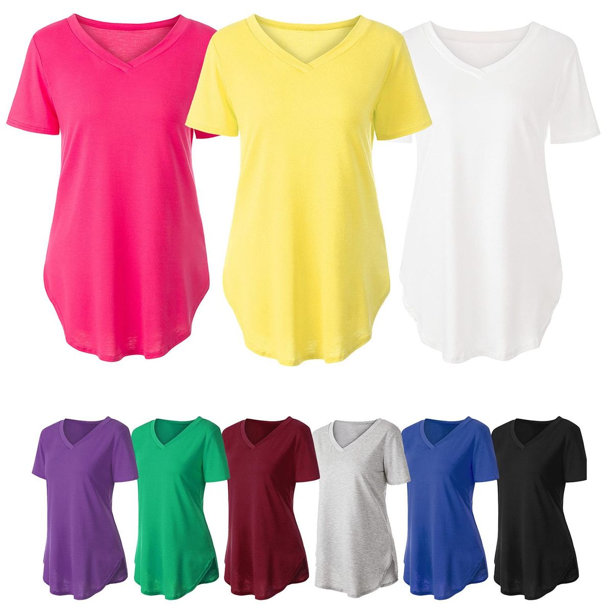 Buy New Fashion Women T-shirt Solid Color V Neck Short Sleeve Rounded Hem Long Casual Party Wear Tops in Nigeria