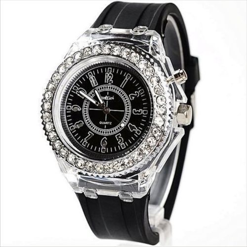 will light on dark place at night time if you need to see, you can click, it flashed colored lights (about 6 to 7 colors in flashion, It is a good gift for relatives and friends who you love. Fashionable, very charming for all occasions. Special dial design attracts much attention from buyers. Amazing view watches. Precise time and keep good time. It's worth to buy for cheap and having a good quality. Color may not appear as exactly as in real life