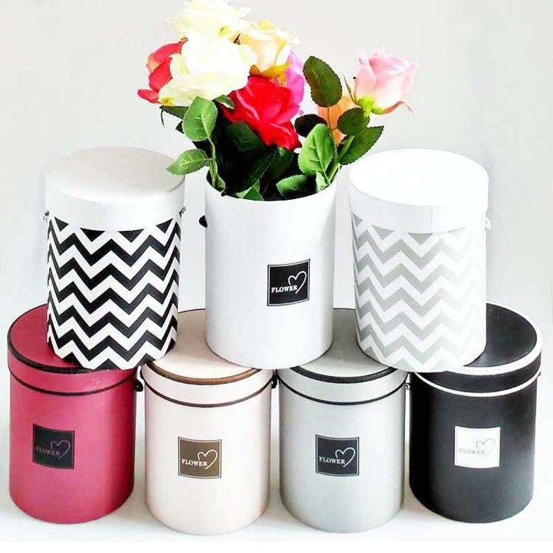 Buy NEW Handheld Flower Box Barrel Round Flower Paper Boxes With Lid Candy Chocolate Bucket Gift Packaging Box Black in Nigeria