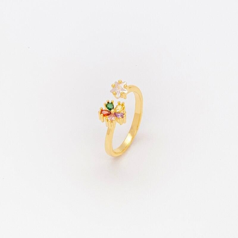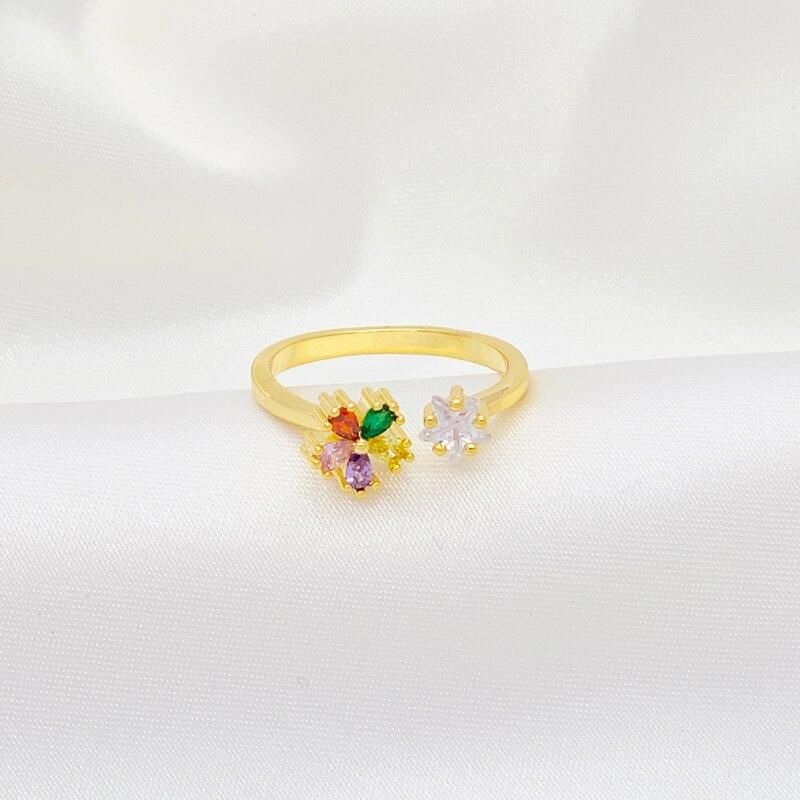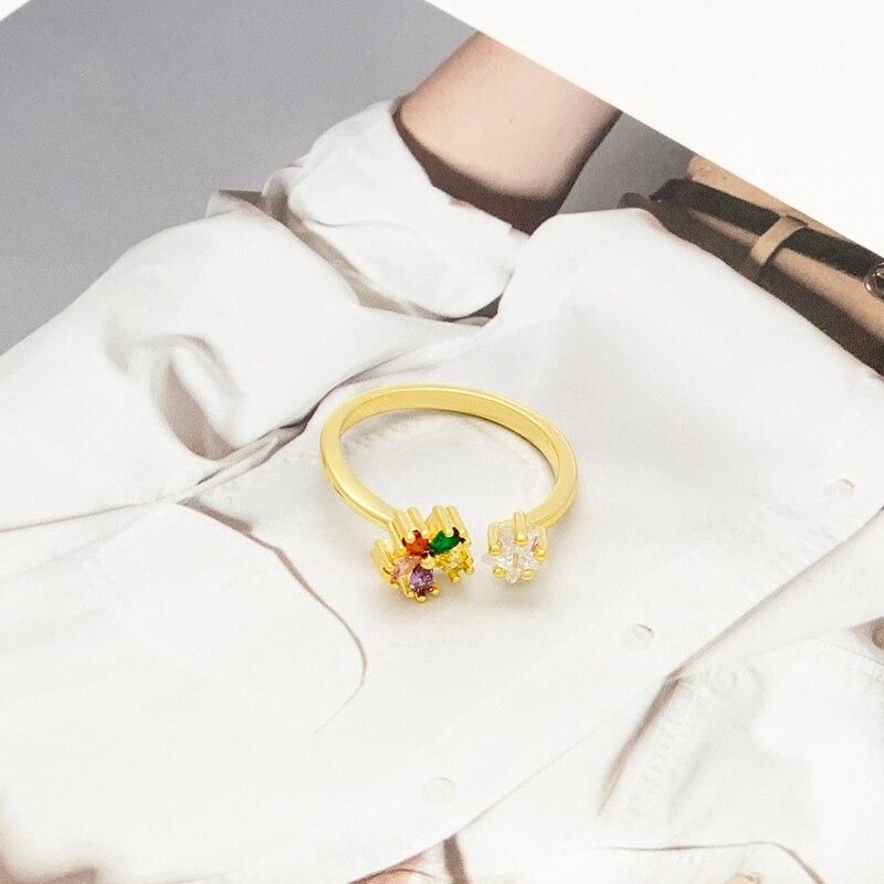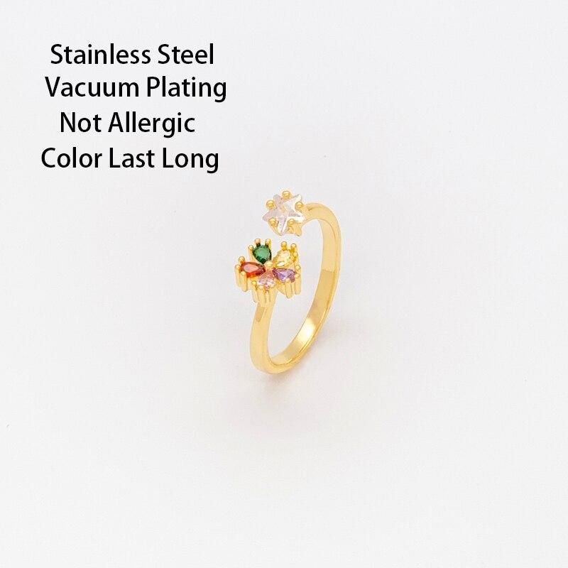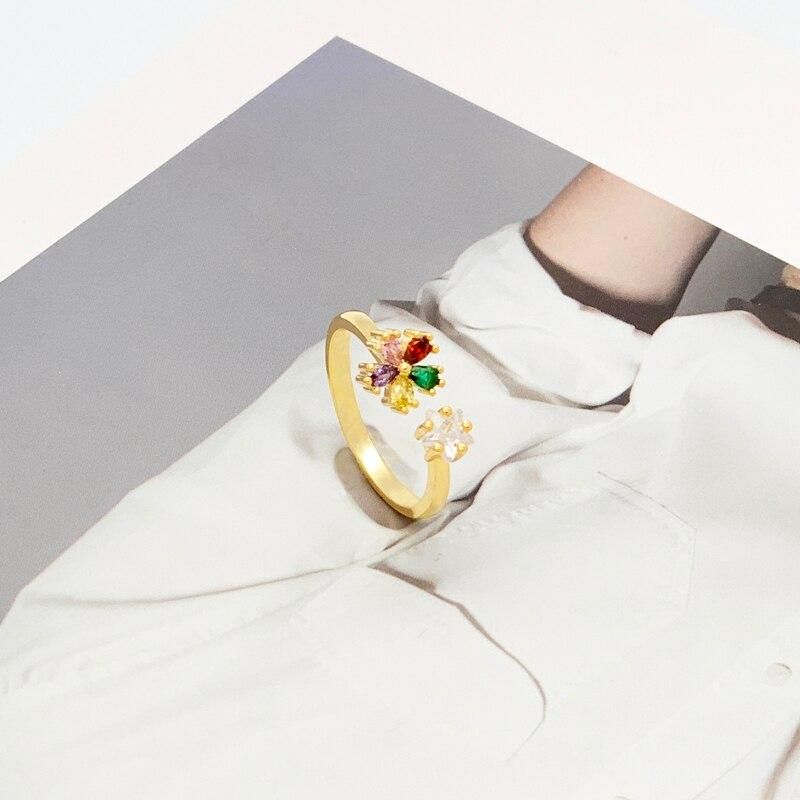 Buy New In Retro Bohemia Colorful Zircon Crystal Flower Open Rings For Women Trendy Female Stainless Steel Adjustable Finger Ring in Nigeria