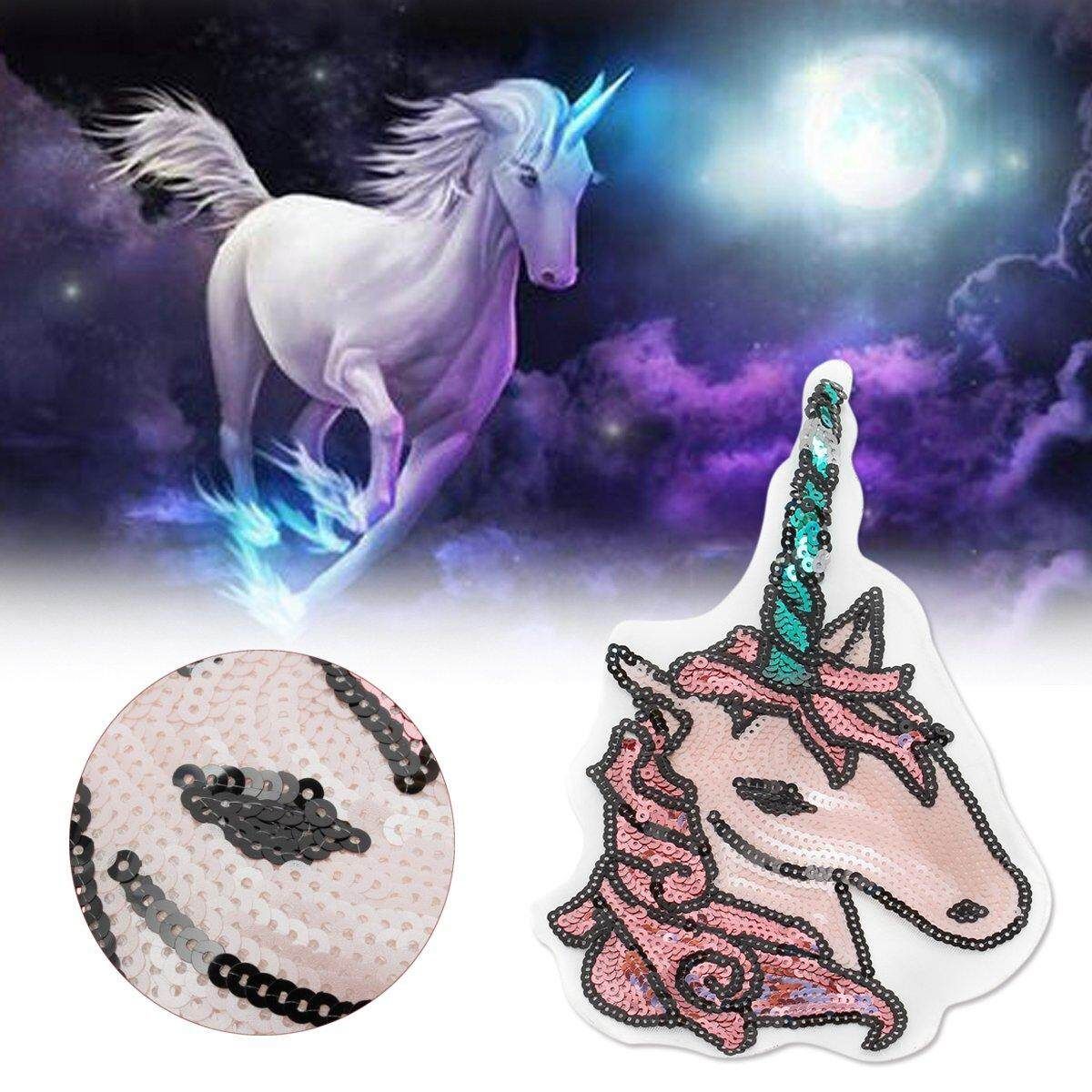 Name: New Large Sew On Sequins Applique Unicorn Horse Pony Patch Motif Personalized US