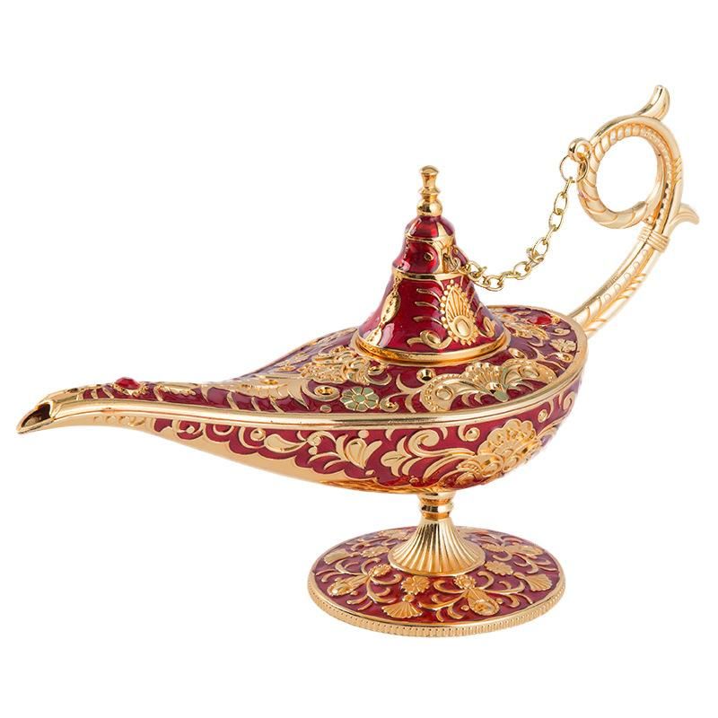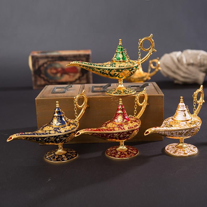 Buy New Metal Crafts Aladdin Magic Lamp Ornament Hollow Creative Retro Wishing Lamp Russian Living Room Gift green Small size 20*12cm width 7cm in Nigeria