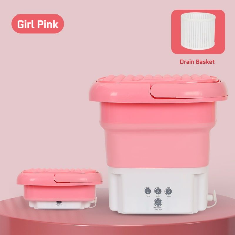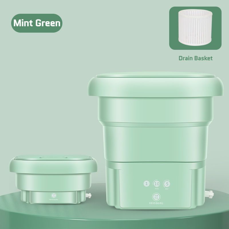 New Mini Folding Washing Machine Portable- It is a small folding washing machine, which can be folded, light and portable. It is mainly used to wash underwear, underwear, socks and small clothes for infants and young children. It can also be used to wash fruits. It can be matched with a drainage basket to drain clothes.