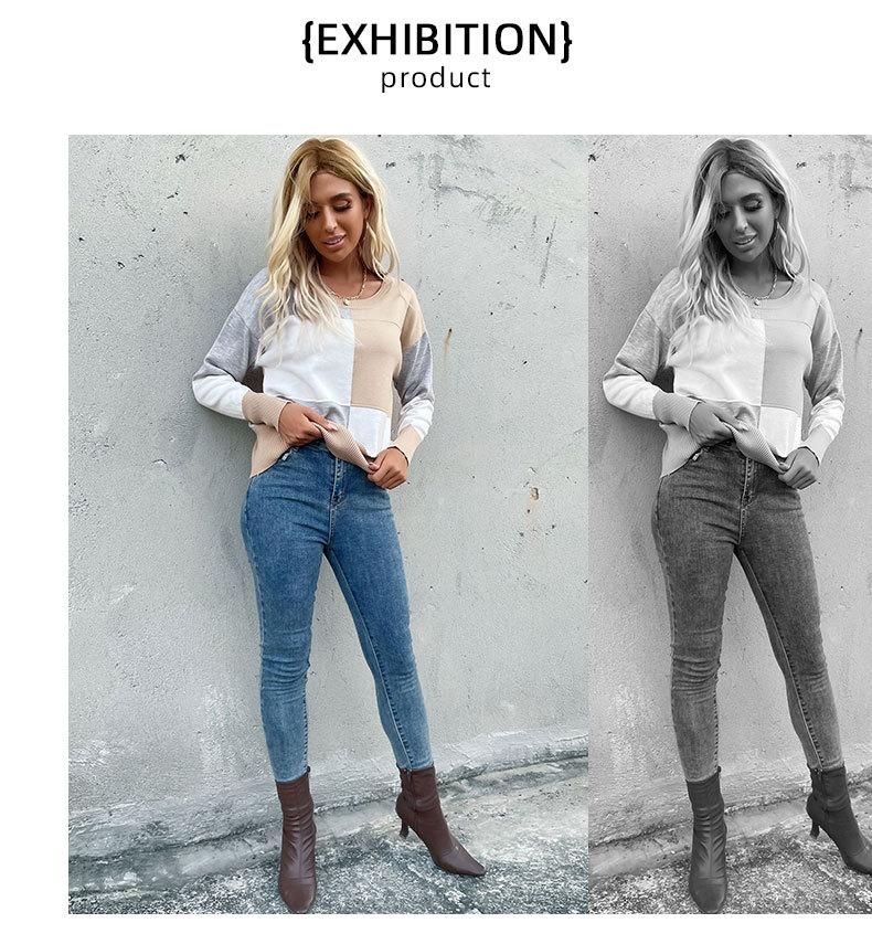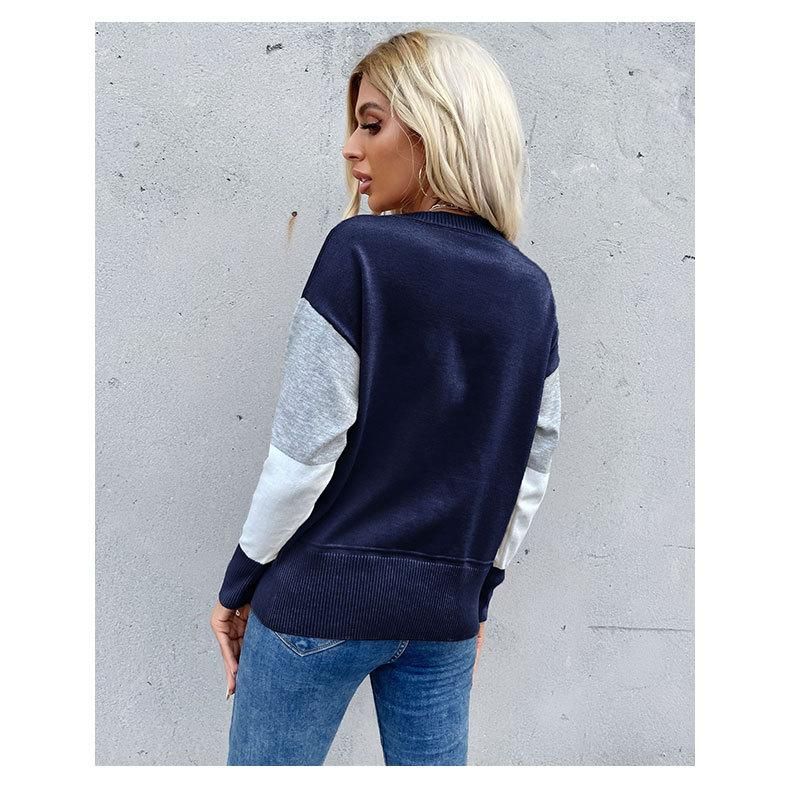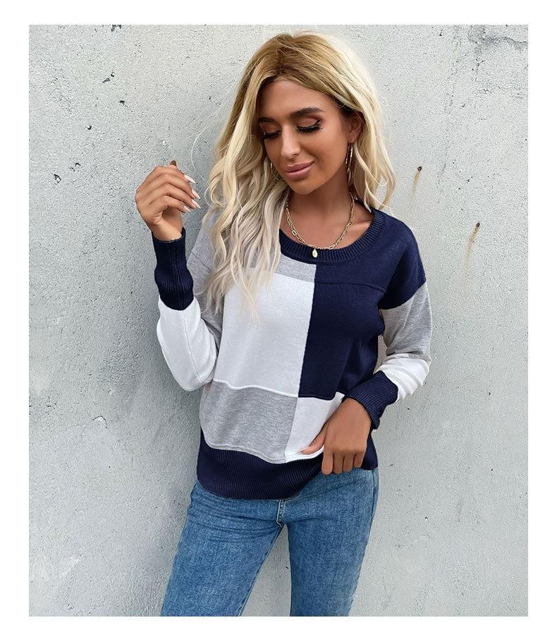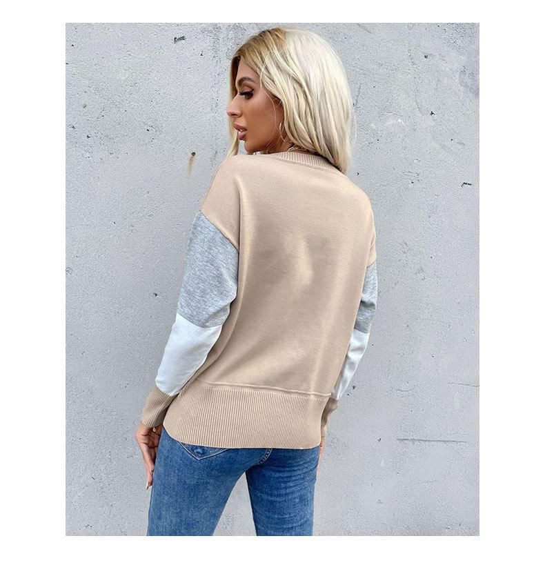 Buy New pullover crewneck spliced long-sleeved knit sweater in Nigeria