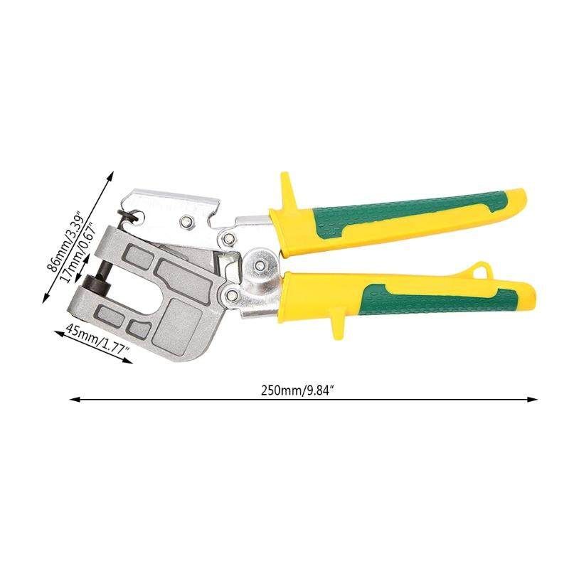 Material: Aluminum alloy Dimensions: As pictures .(approx) Total length: 25cm(9.84in) Throat depth: 1-1/2'' deep Jaw opening: 1/4'' capacity: 22ga. metal : Silver+Green+Yellow Quantity: 1 pc Package Includes :