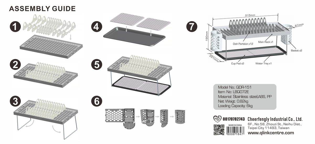 * The design of this Dish Drainer is extremely reasonable. The rack for placing the bowl and plate can be moved or disassembled. There is a Water Tray below. The Cup Hook and Basket can be hung on the side according to their requirements