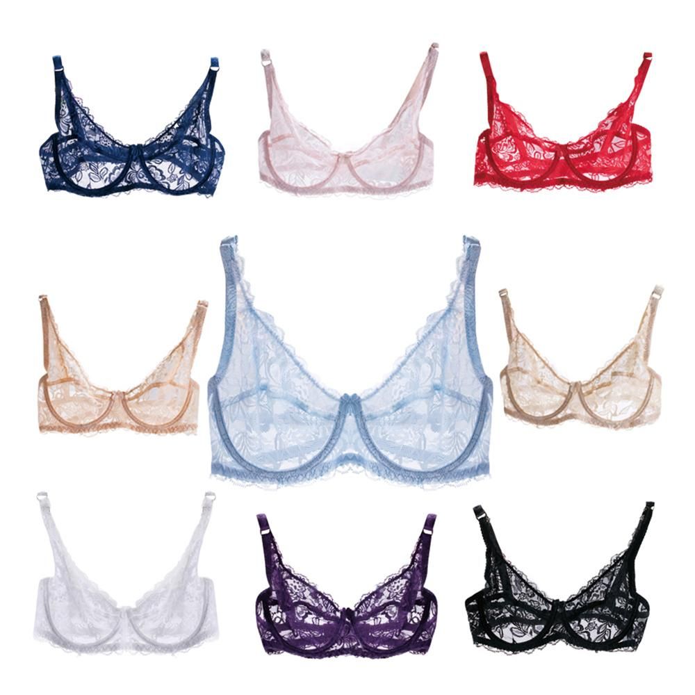 Buy New Sexy Women Lace Gauze Bra Push Up 3/4 Cup Hook-and- Eye Breathable Ultra-thin bra Lingerie Underwear in Nigeria