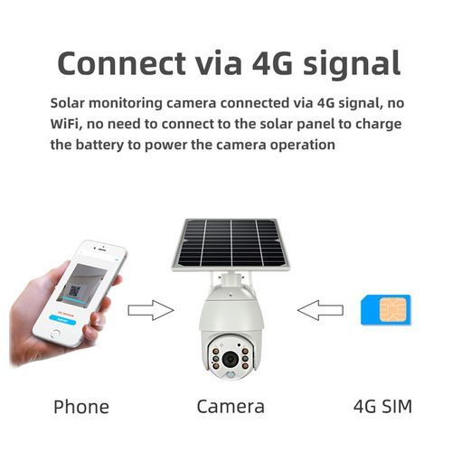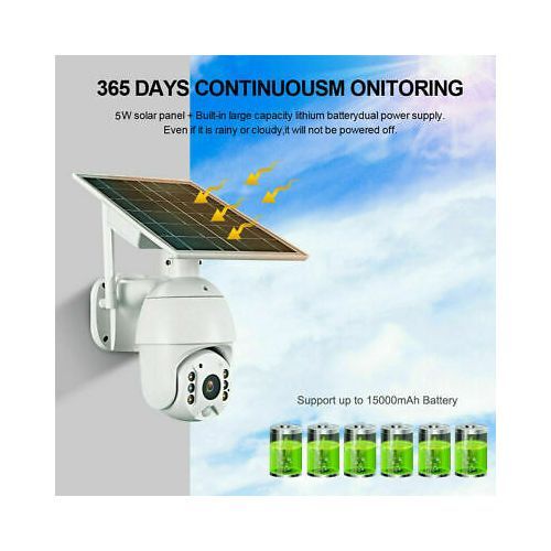 Rechargeable battery and solar panel: PTZ camera outside with low energy consumption, no power connection required, fully dependent on rechargeable solar panel and battery. (Battery model: 18650, 3.7V, 2600mAh, )